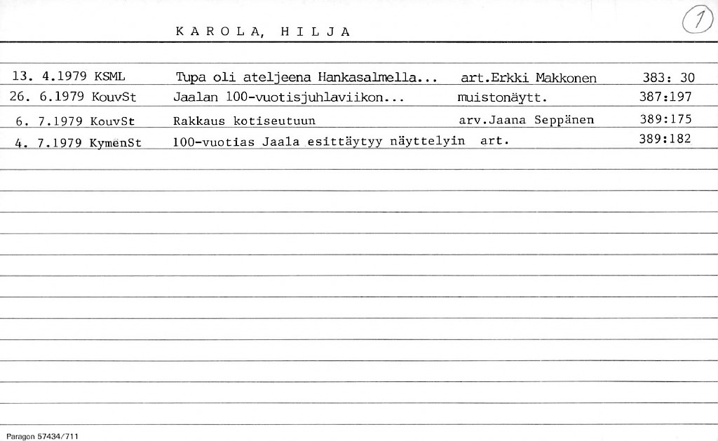 Karpakka, Otso, ks. Toivola, Hilkka