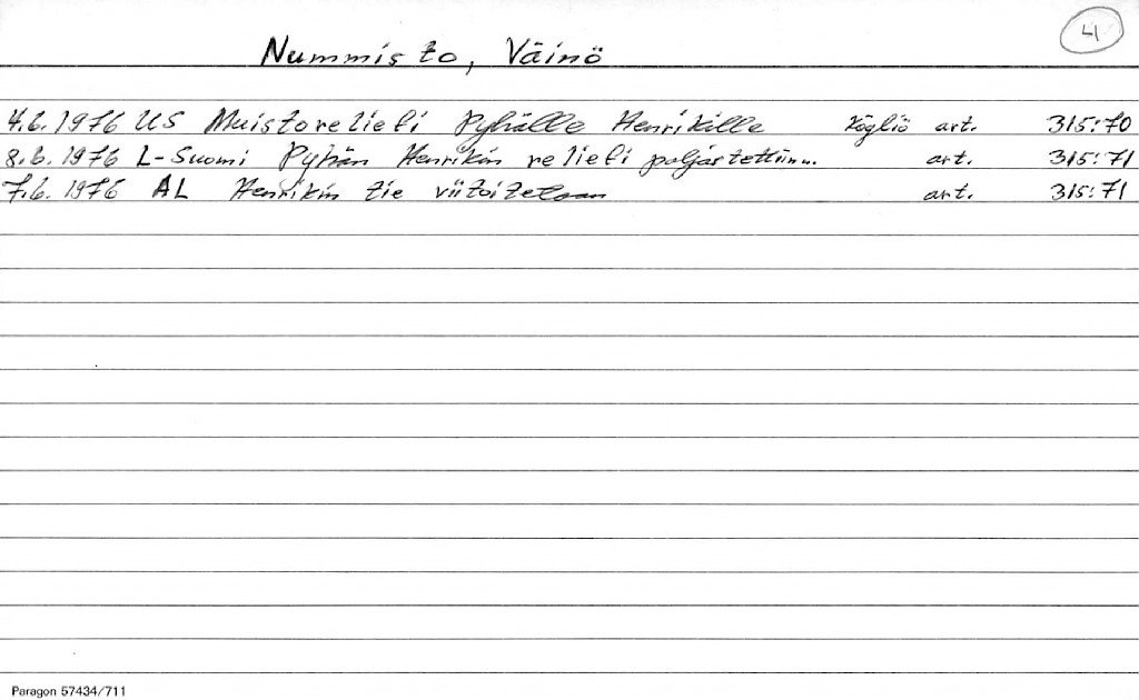 Nummisto, Väinö