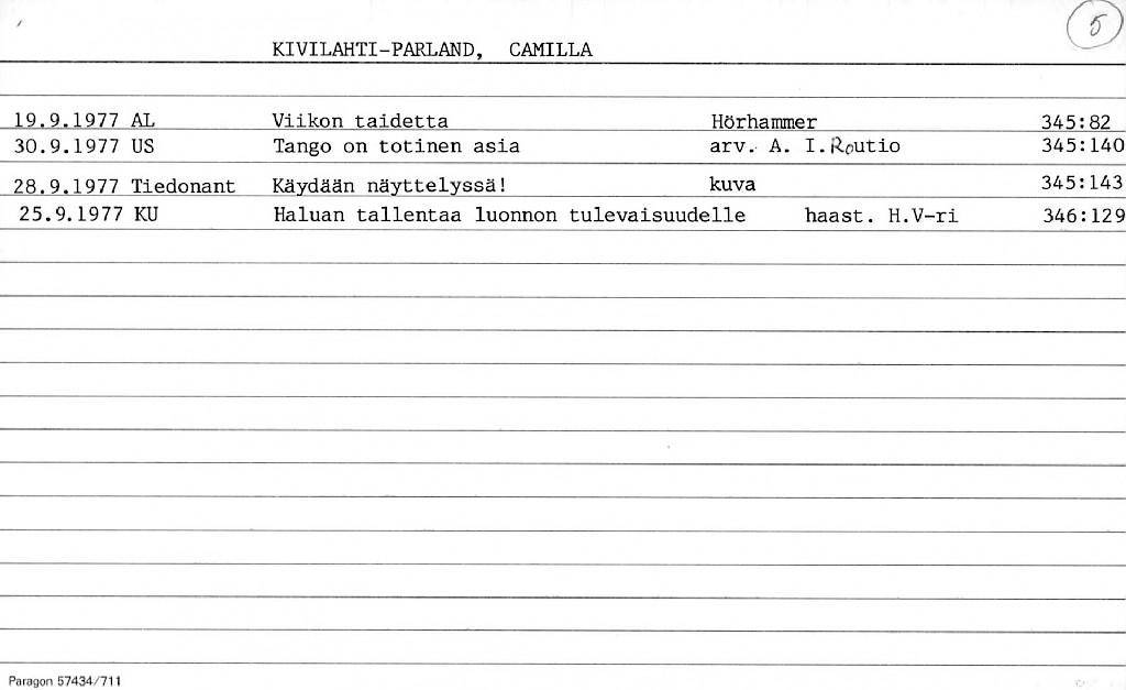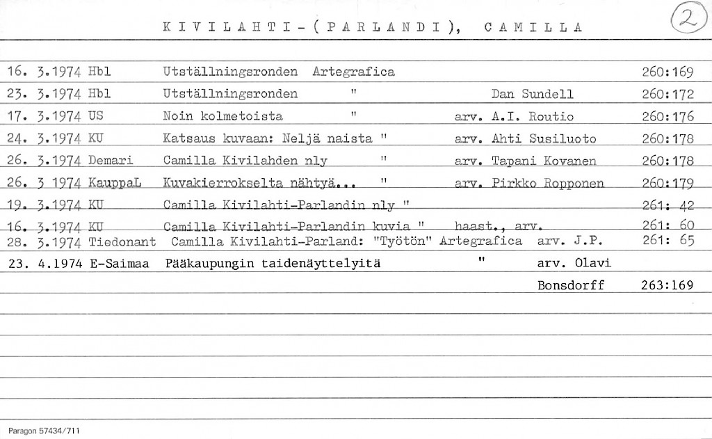 Kivilahti-Parland, Camilla