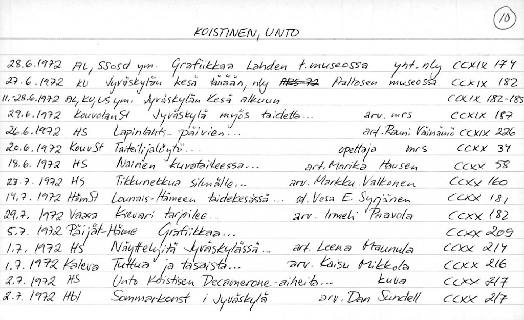 10 korttia