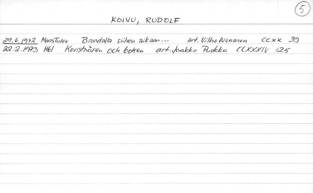 5 korttia
