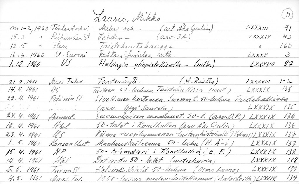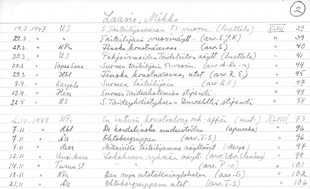 Artist Index to the Press Cuttings Collection