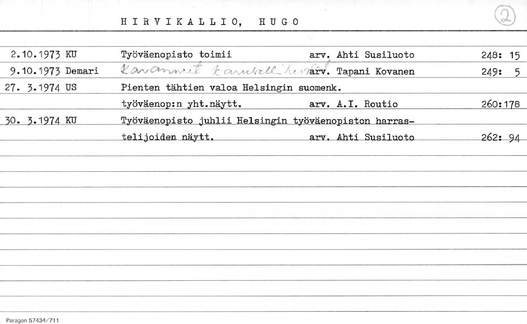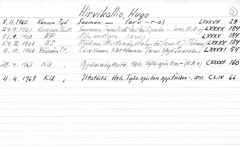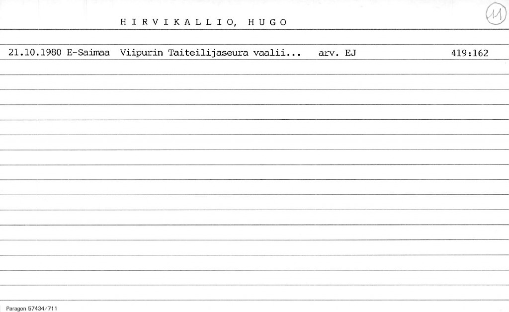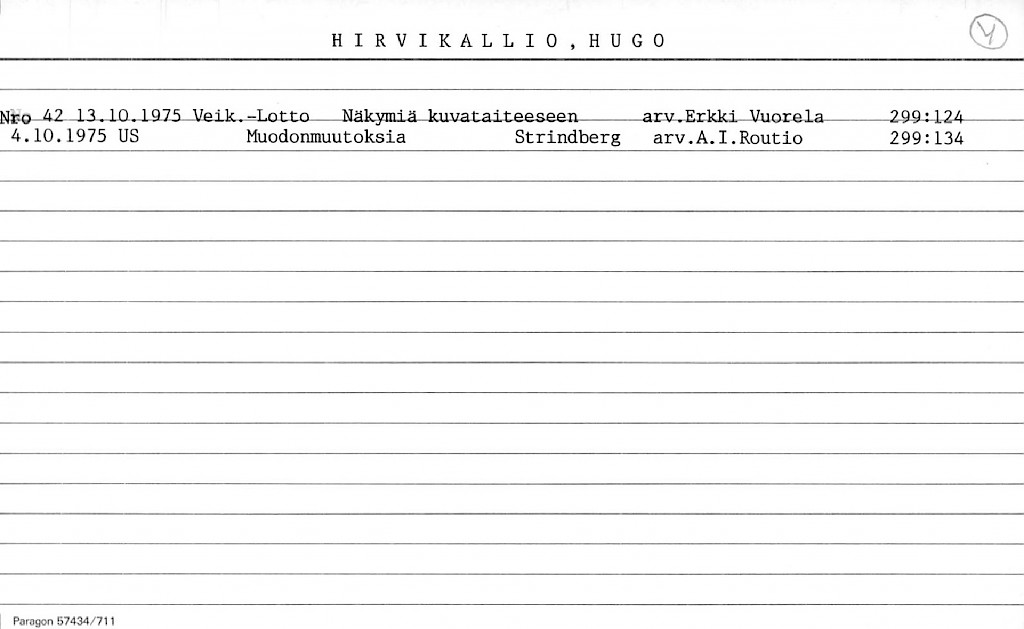 Hirvikallio, Hugo