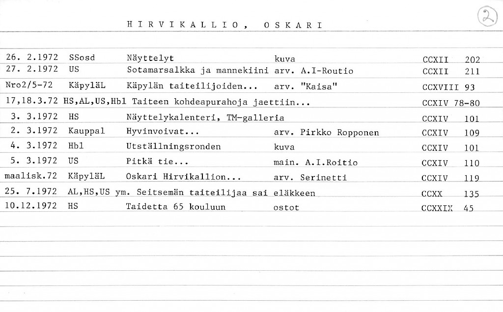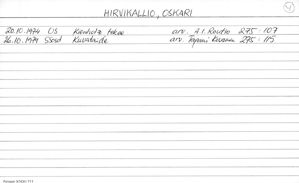 Hirvikallio, Oskari