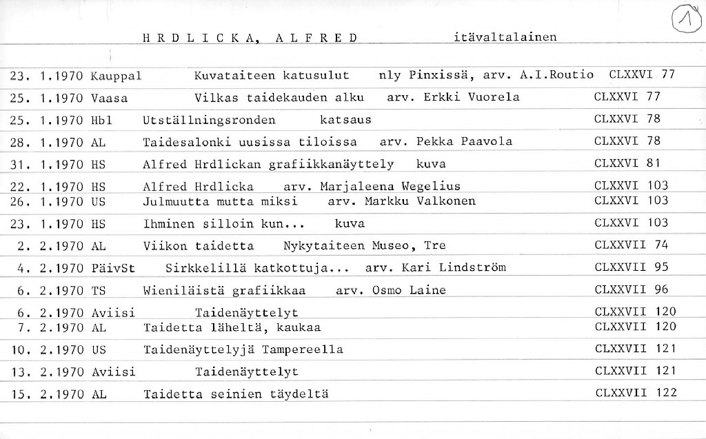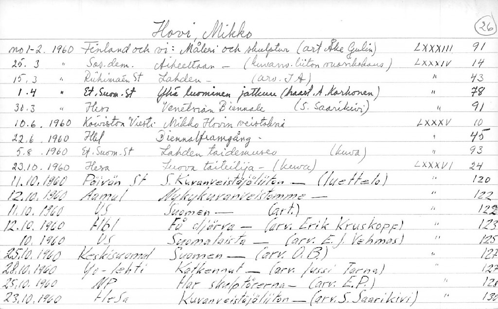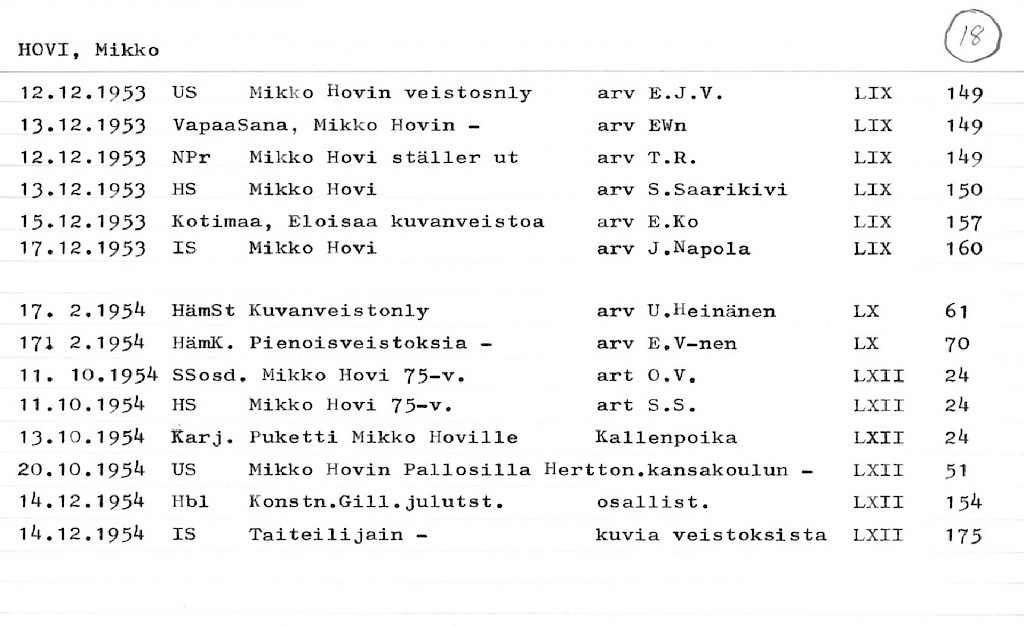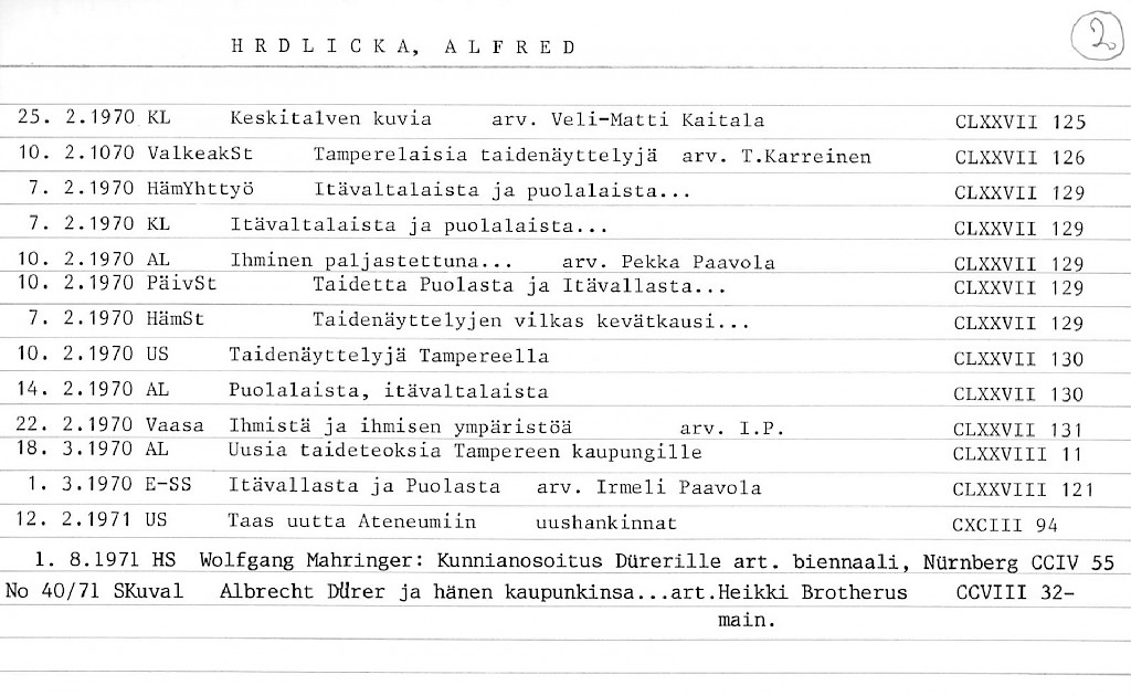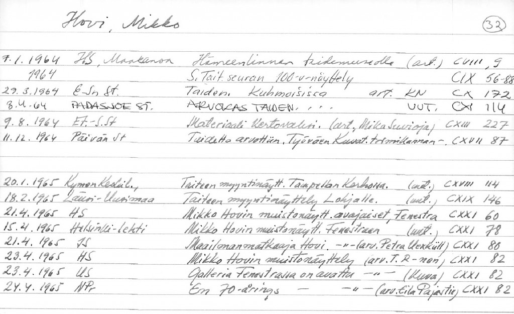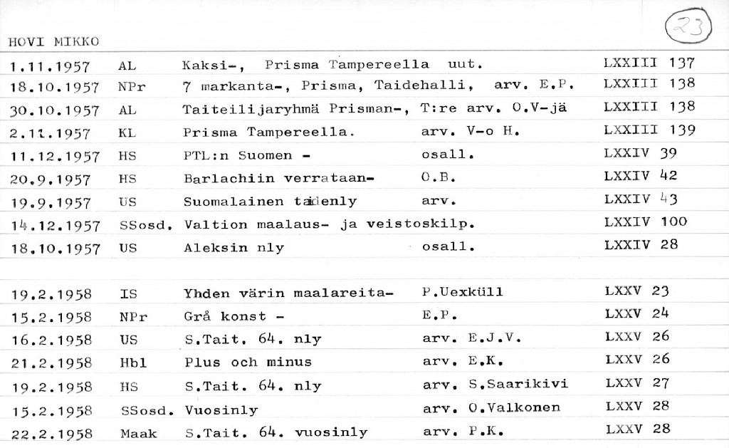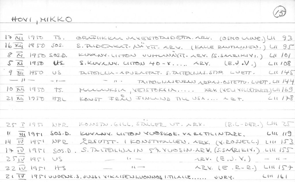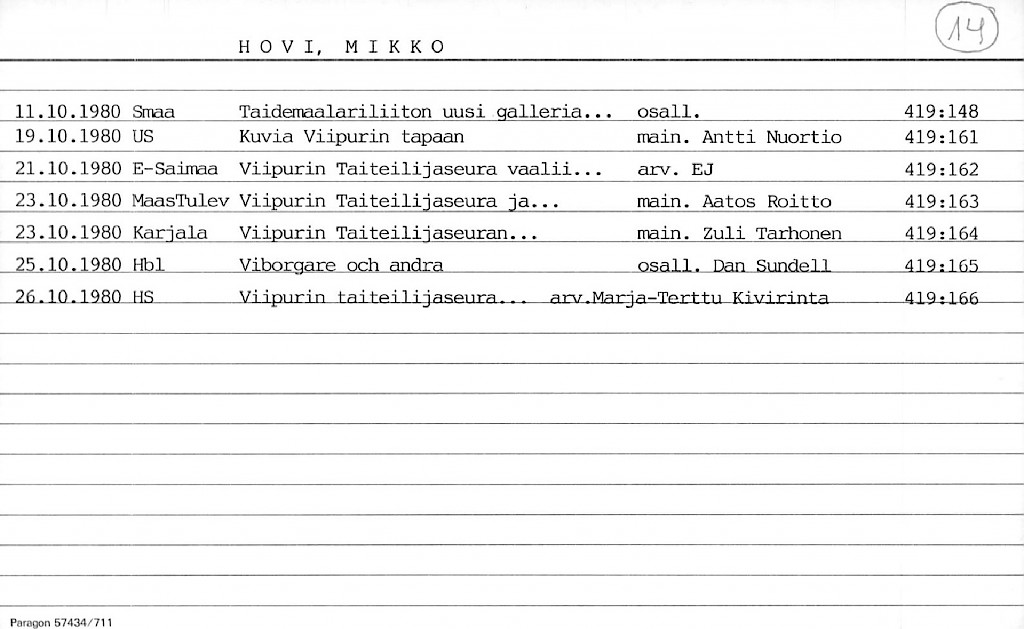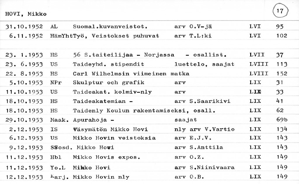 Artist Index to the Press Cuttings Collection