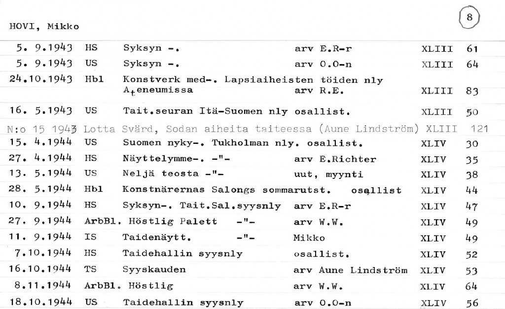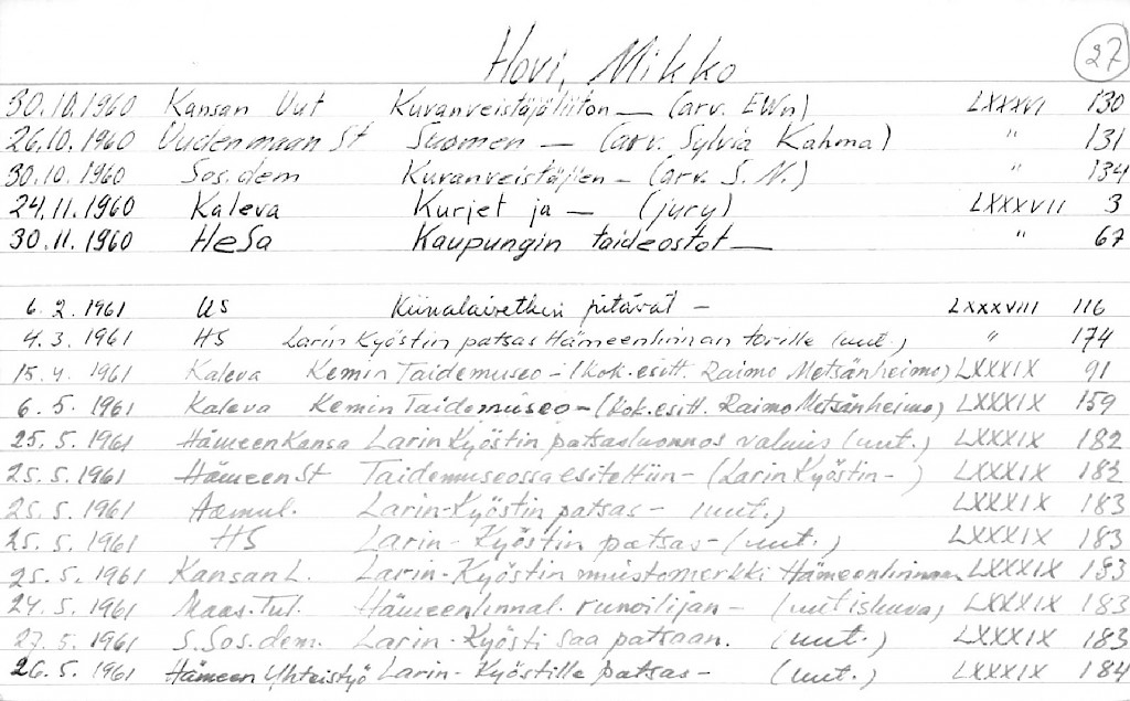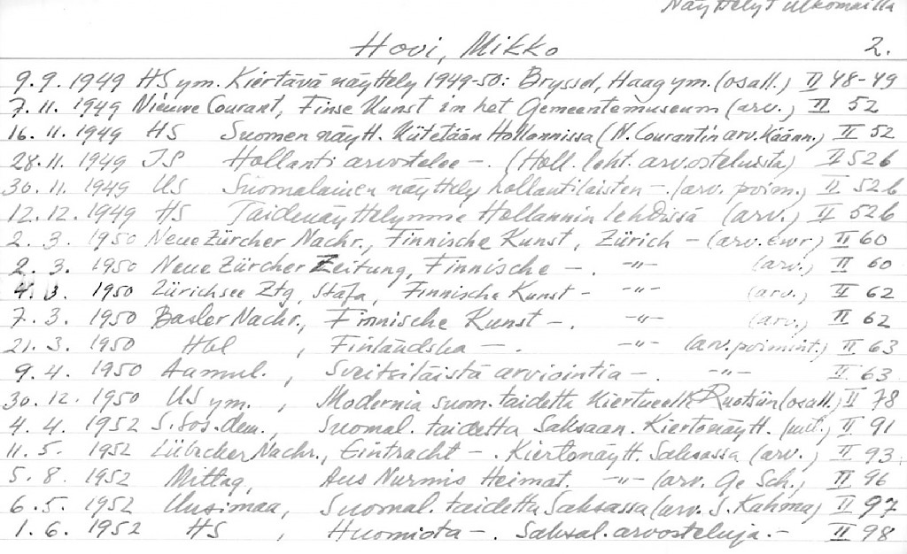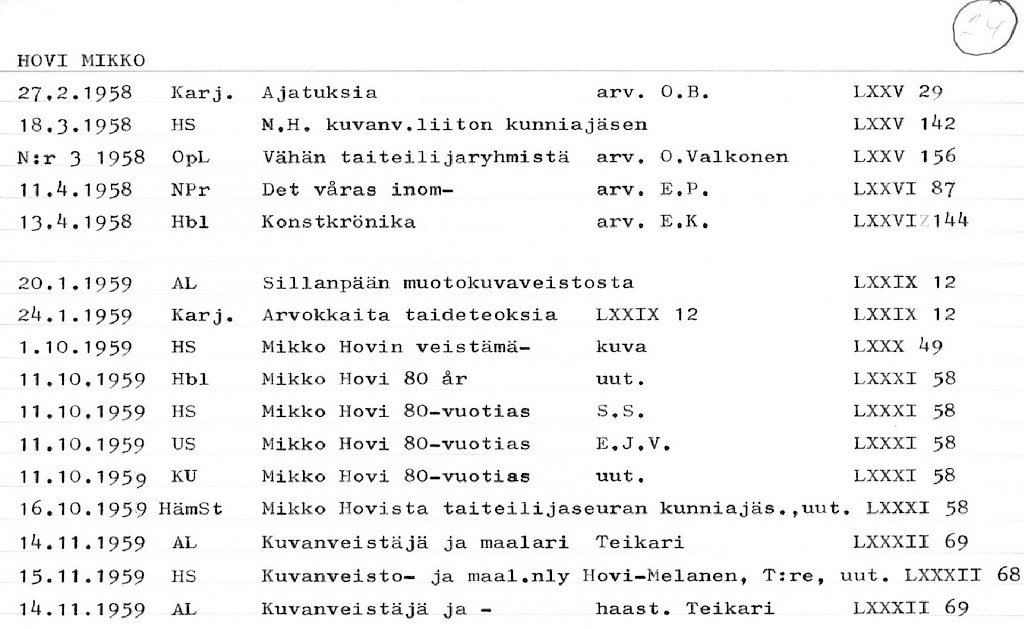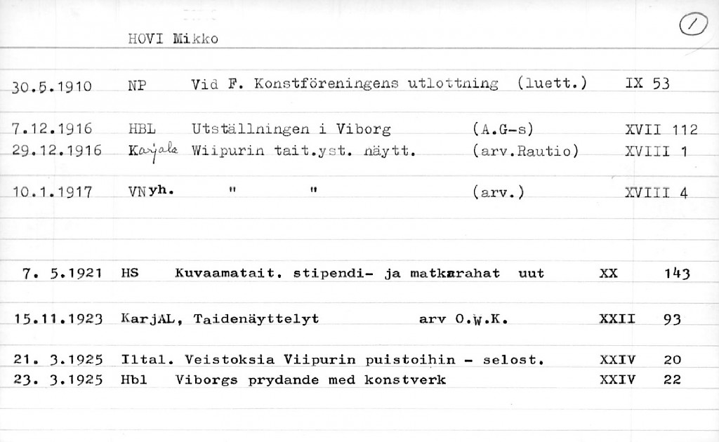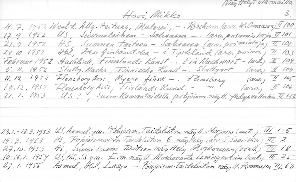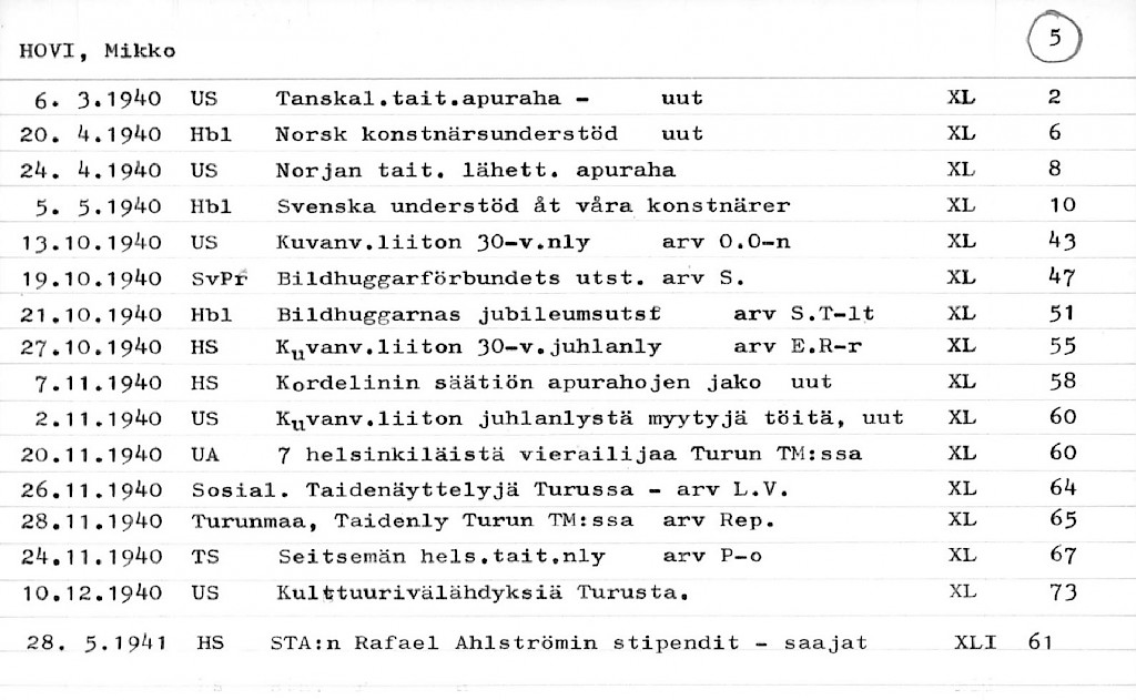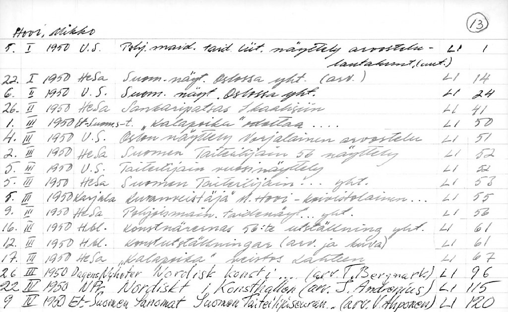 Artist Index to the Press Cuttings Collection