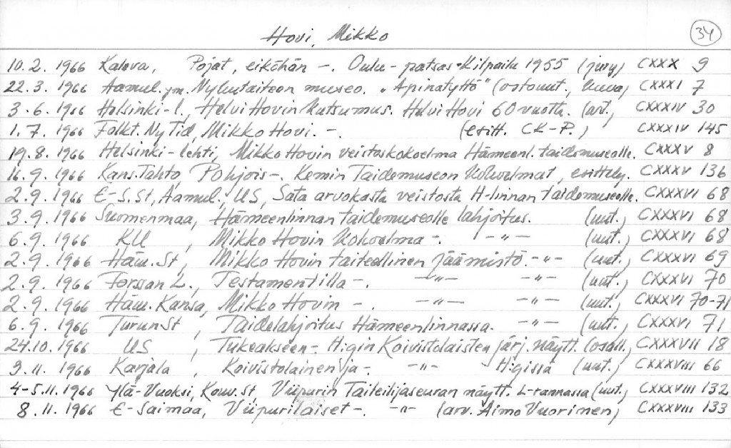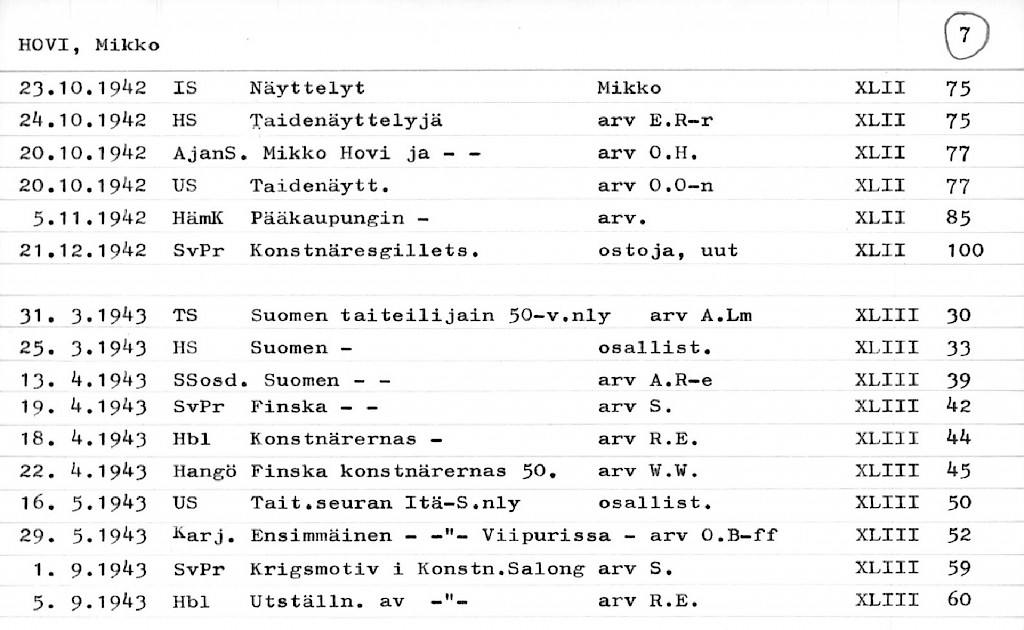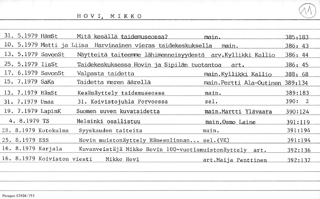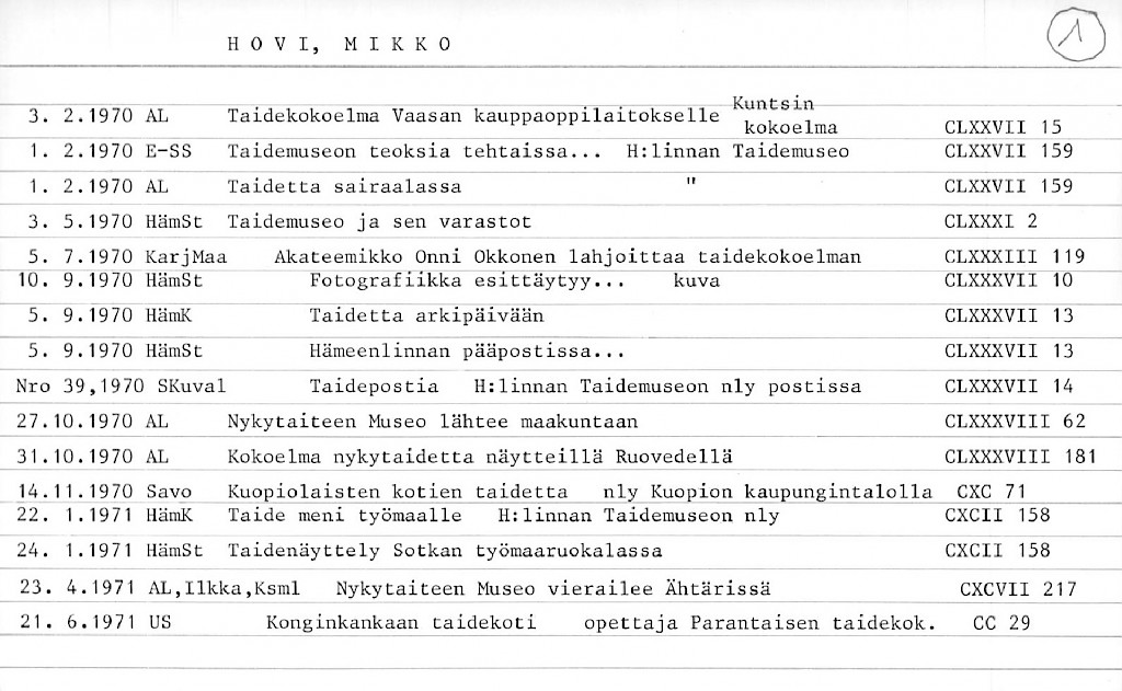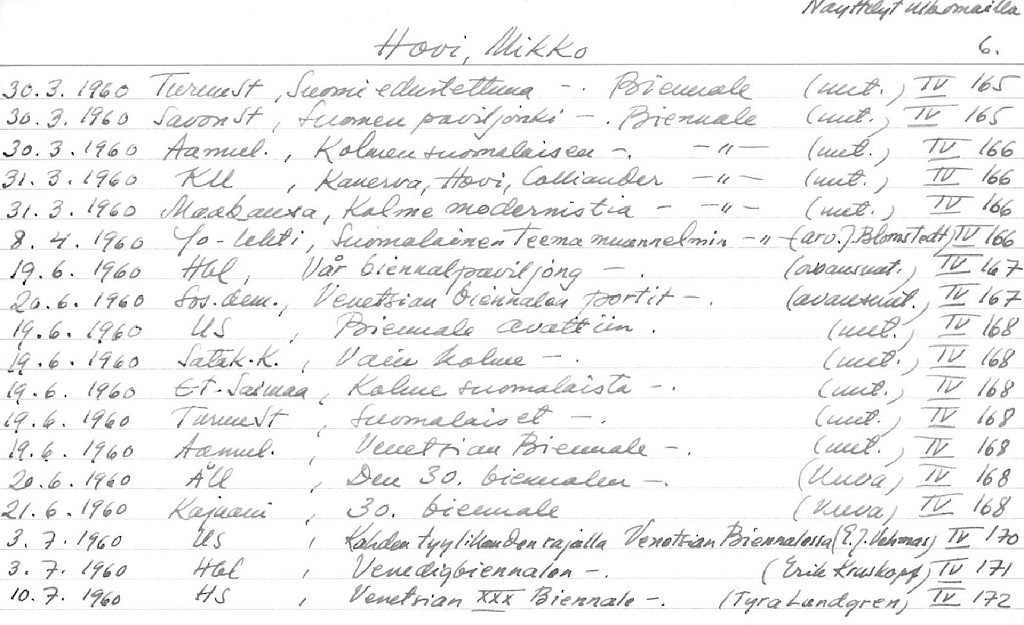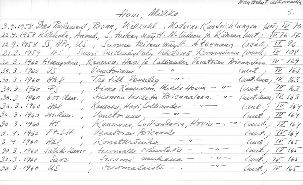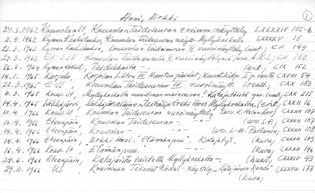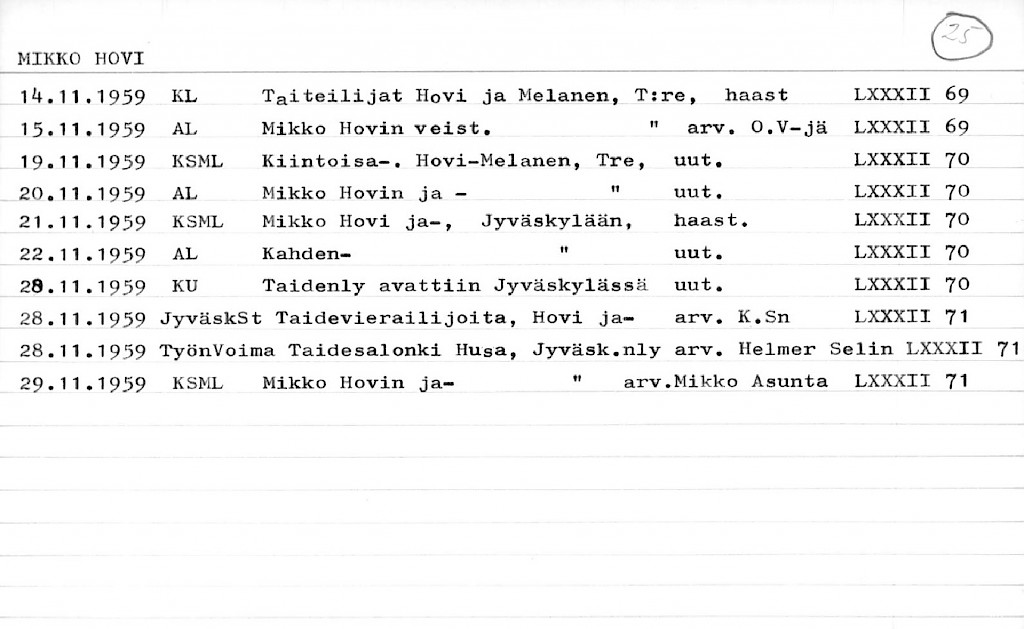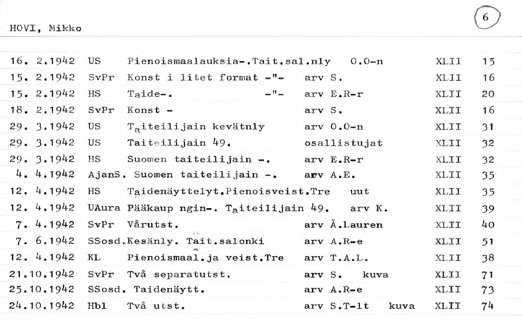 Artist Index to the Press Cuttings Collection