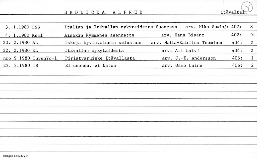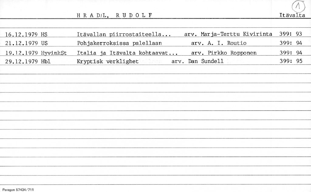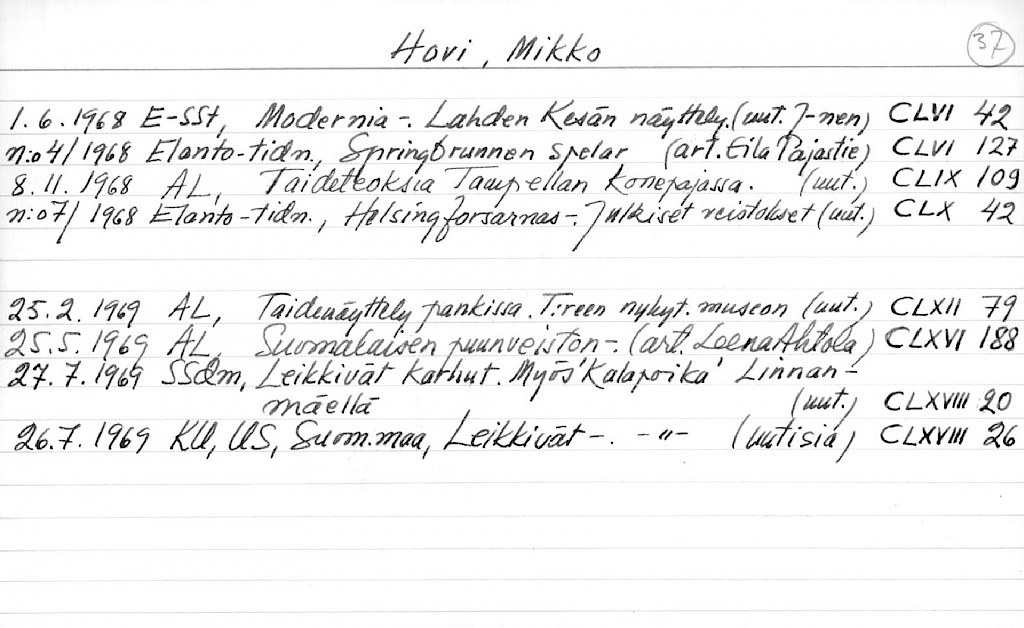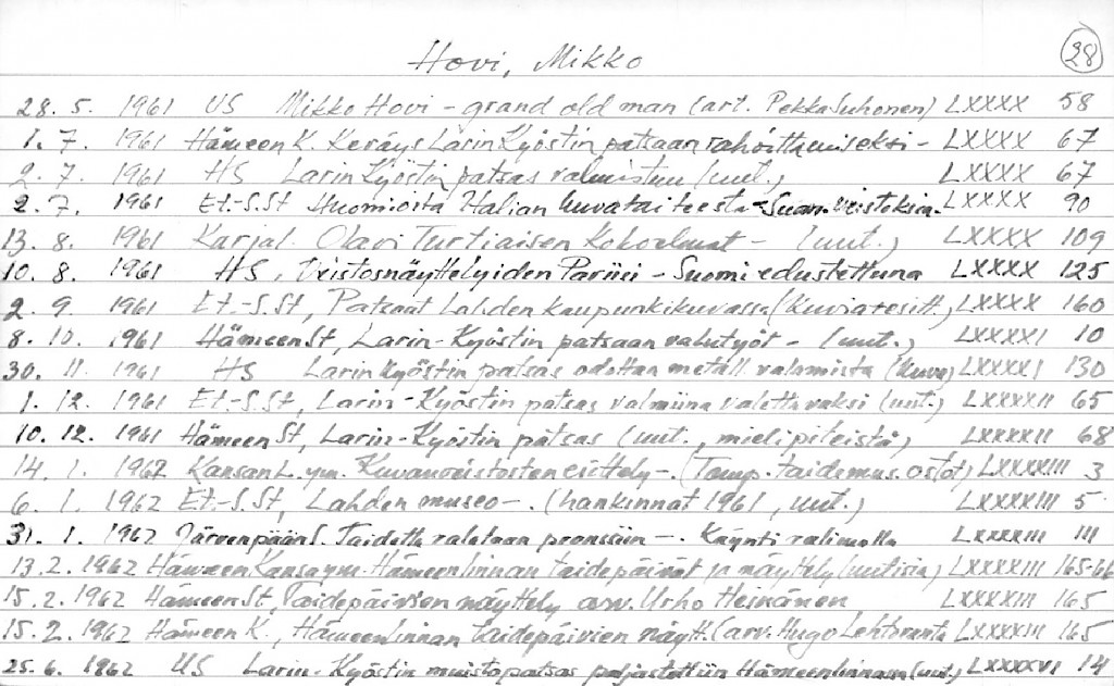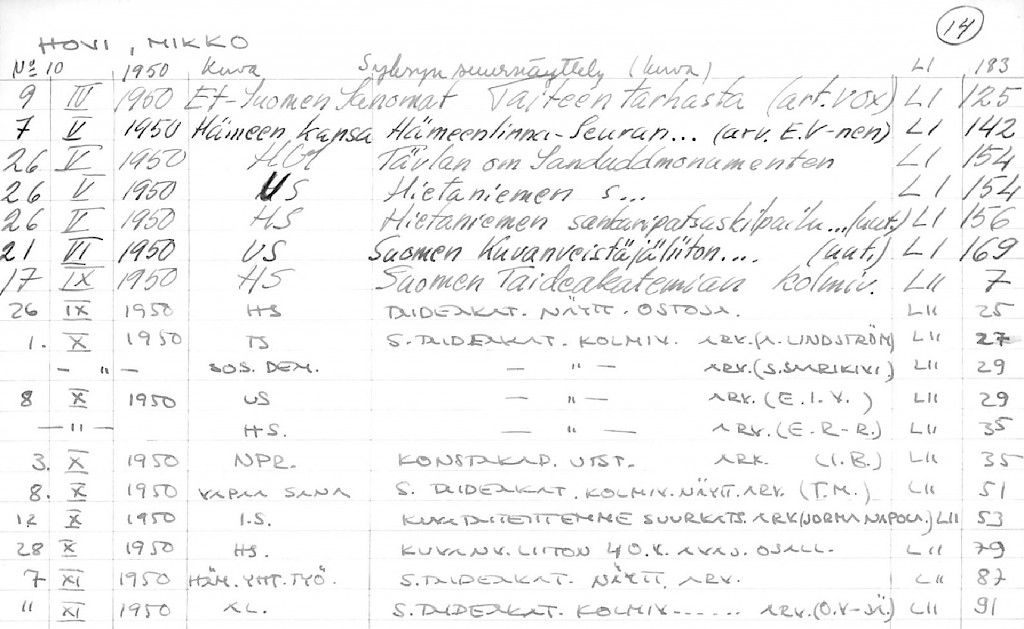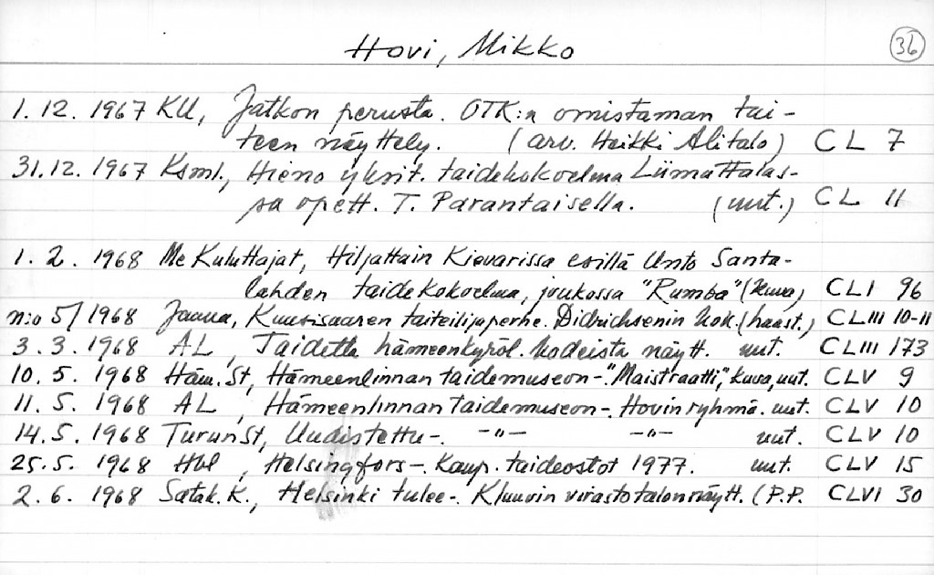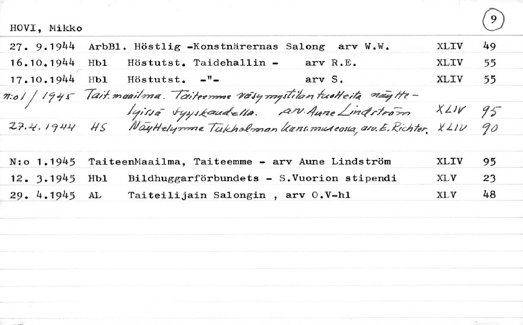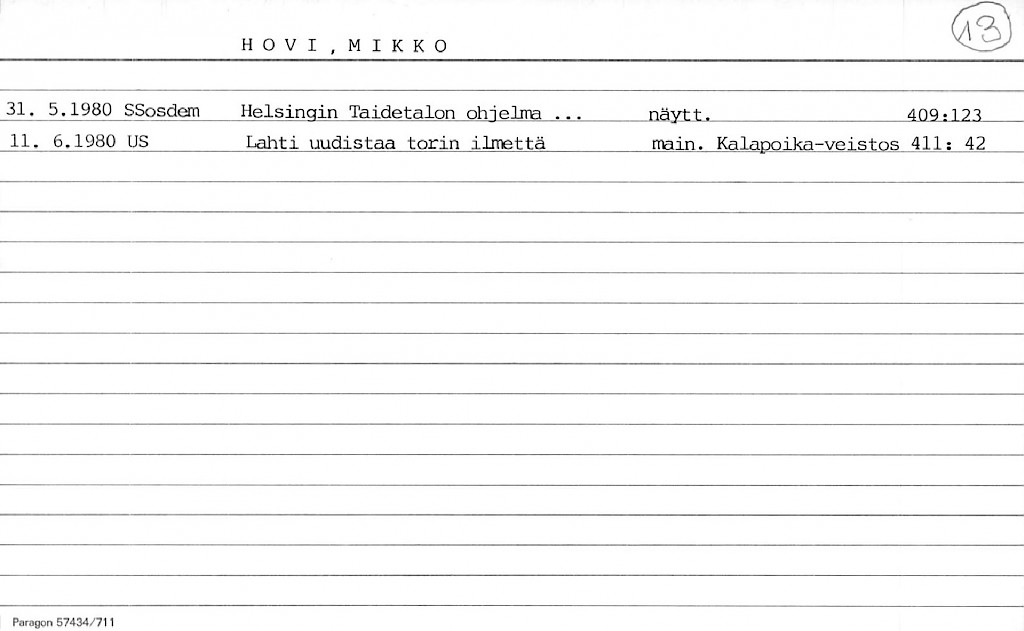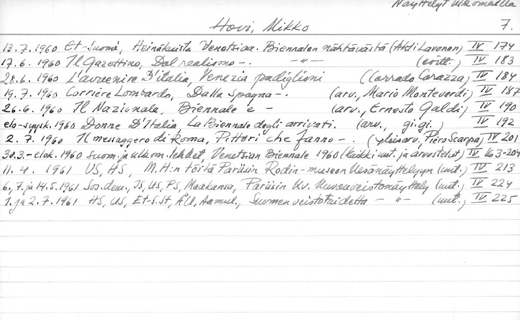 Artist Index to the Press Cuttings Collection
